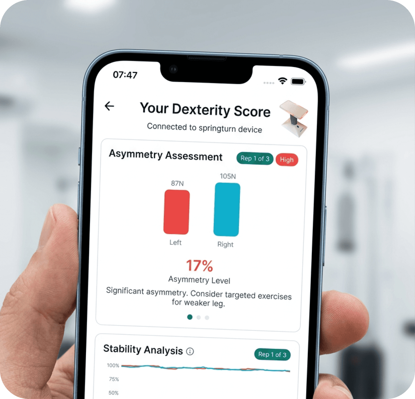 Springturn converts neuromuscular control into measurable performance data.
